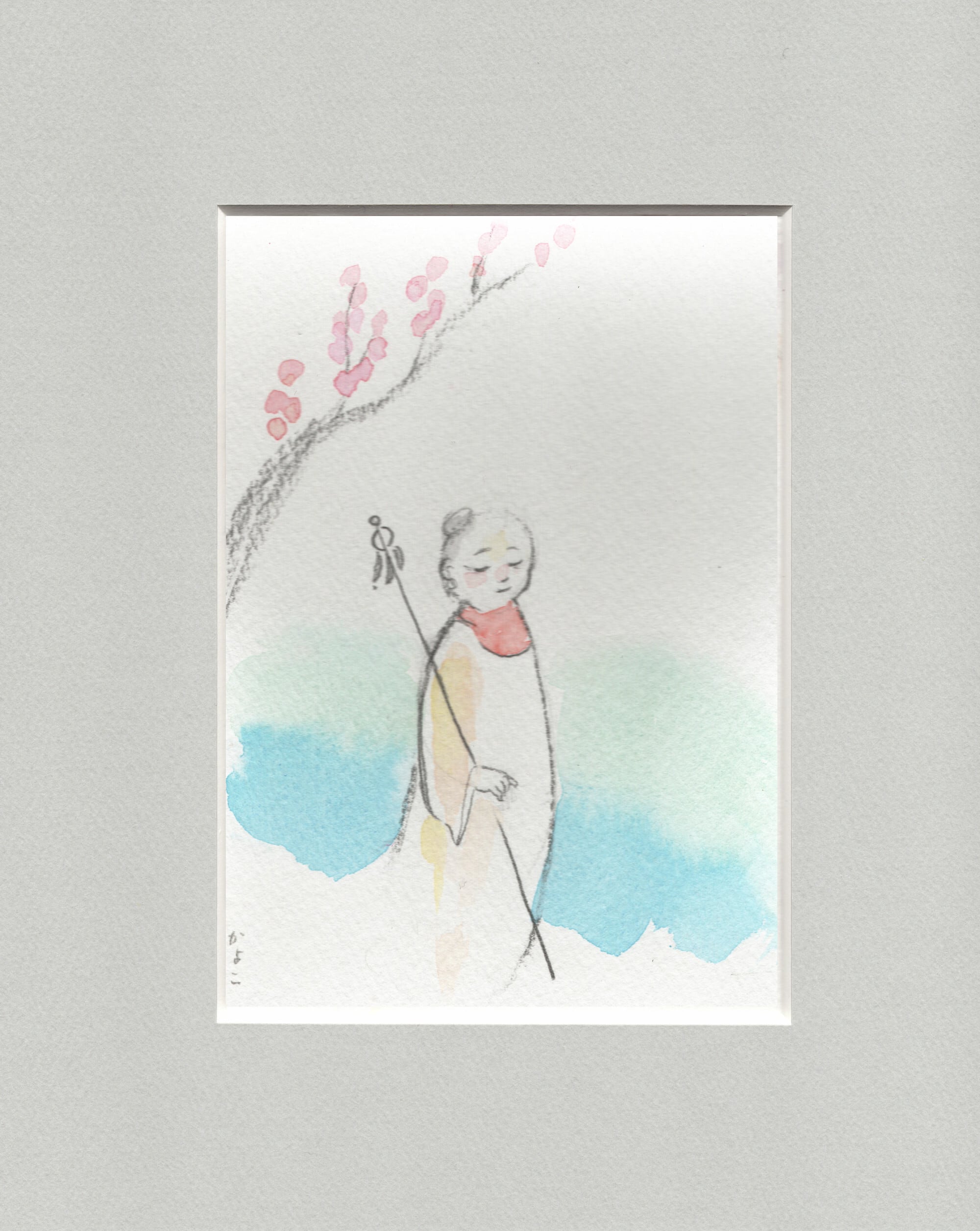 うめの咲く中、ひとびとを見守るお地蔵さん